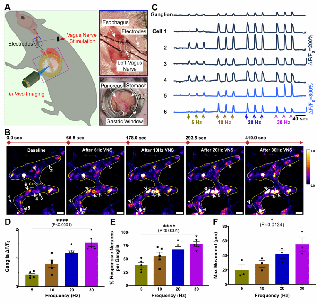 2024年9月16日,Nature Communications在线发表了beat365英国官网网站、华中科技大学武汉光电国家研究中心付玲教授团队的研究论文In vivo imaging of vagal-induced myenteric plexus responses in gastrointestinal tract with an optical window。该研究展示了一种在细胞分辨率下稳定、长时间观察小鼠胃窦和肠的光学成像方法,为在体研究肠神经系统(Enteric Nervous System, ENS)功能和肠-脑神经通讯提供了一种实用的解决方案。研究团队利用该方法记录了迷走神经(...