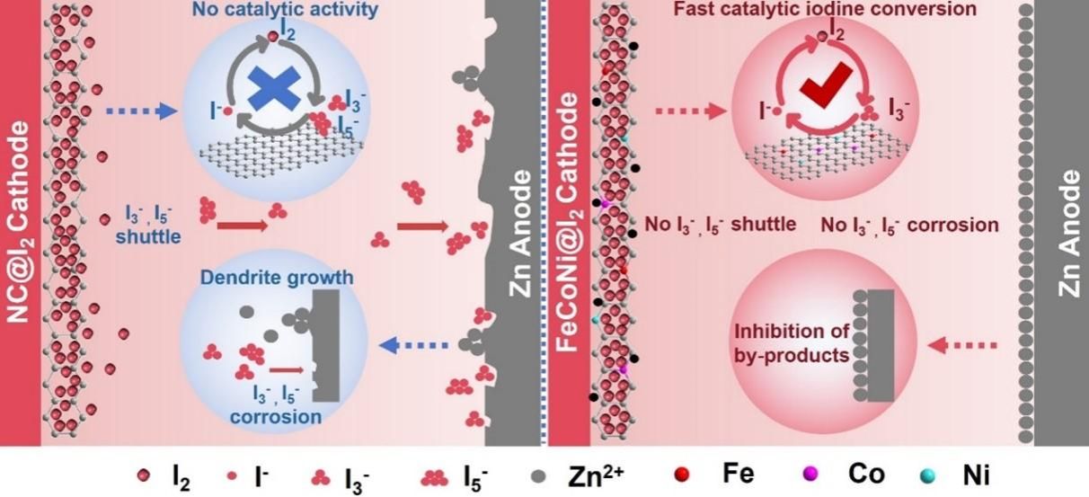 《中国科学报》(记者 温才妃 李思颖 梁淑仪)beat365英国官网网站海洋科学与工程学院副教授邢振月、史晓东和教授田新龙团队研究发现,将铁钴镍原子掺杂多孔碳催化剂作为功能载体材料可以推动水系锌碘电池循环稳定工作。12月19日,相关研究成果发表在《先进功能材料》上。铁钴镍原子掺杂多孔碳催化剂作为功能载体材料的作用机制示意图。课题组供图水系锌碘电池因其高安全性、高能量密度、低成本和环保属性而受到广泛关注。然而,活性碘溶解和多碘化物穿梭是阻碍水系锌碘电池应用的两大障碍。...