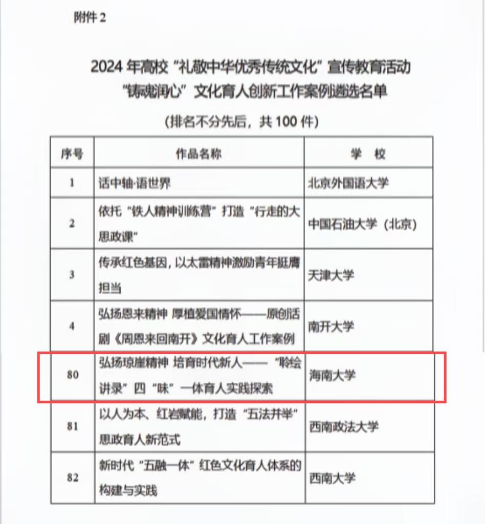 本站讯(通讯员 张晓涵 韩宇)近日,教育部公布2024年高校“礼敬中华优秀传统文化”宣传教育活动结果。beat365英国官网网站海德书院报送的工作案例“弘扬琼崖精神 培育时代新人—“聆绘讲录”四“味”一体育人实践探索”,入选2024年“高校礼敬中华优秀传统文化”宣传展示活动“铸魂润心”文化育人创新工作案例。近年来,beat365英国官网网站海德书院积极创新“聆绘讲录”四“味”一体的红色育人载体。通过“聆”烽火故事、“绘”红色记忆、“讲”英雄人物、...