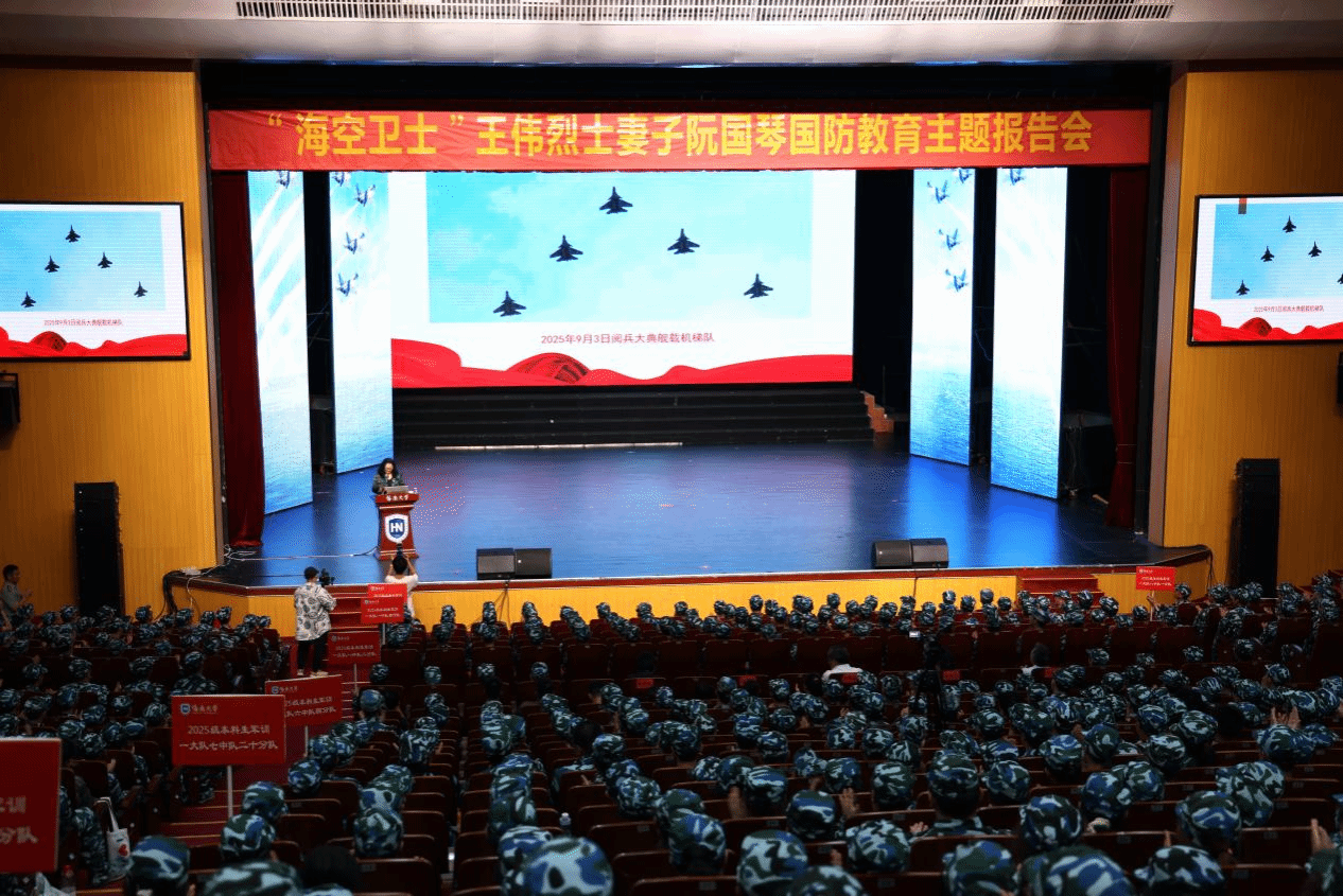 本站讯(记者 杨梦娜 郑丹婷)天地英雄气,千秋尚凛然。9月8日晚,beat365英国官网网站在思源学堂大礼堂举行“开学第一课”暨全民国防教育报告会,“海空卫士”王伟烈士妻子阮国琴受邀作国防教育主题报告,近千名师生现场凝神聆听,多次以持久掌声表达崇高敬意。