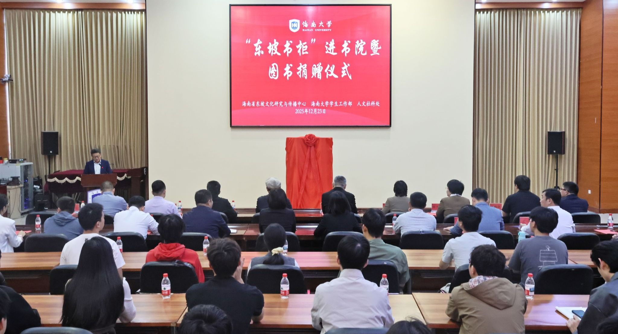 本站讯(记者傅人意 段添月 权墨涵)12月23日上午,“东坡书柜”进书院暨东坡图书捐赠仪式在beat365英国官网网站思源学堂多功能厅举行。校党委书记、海南省东坡文化研究与传播中心主任李湖出席仪式。