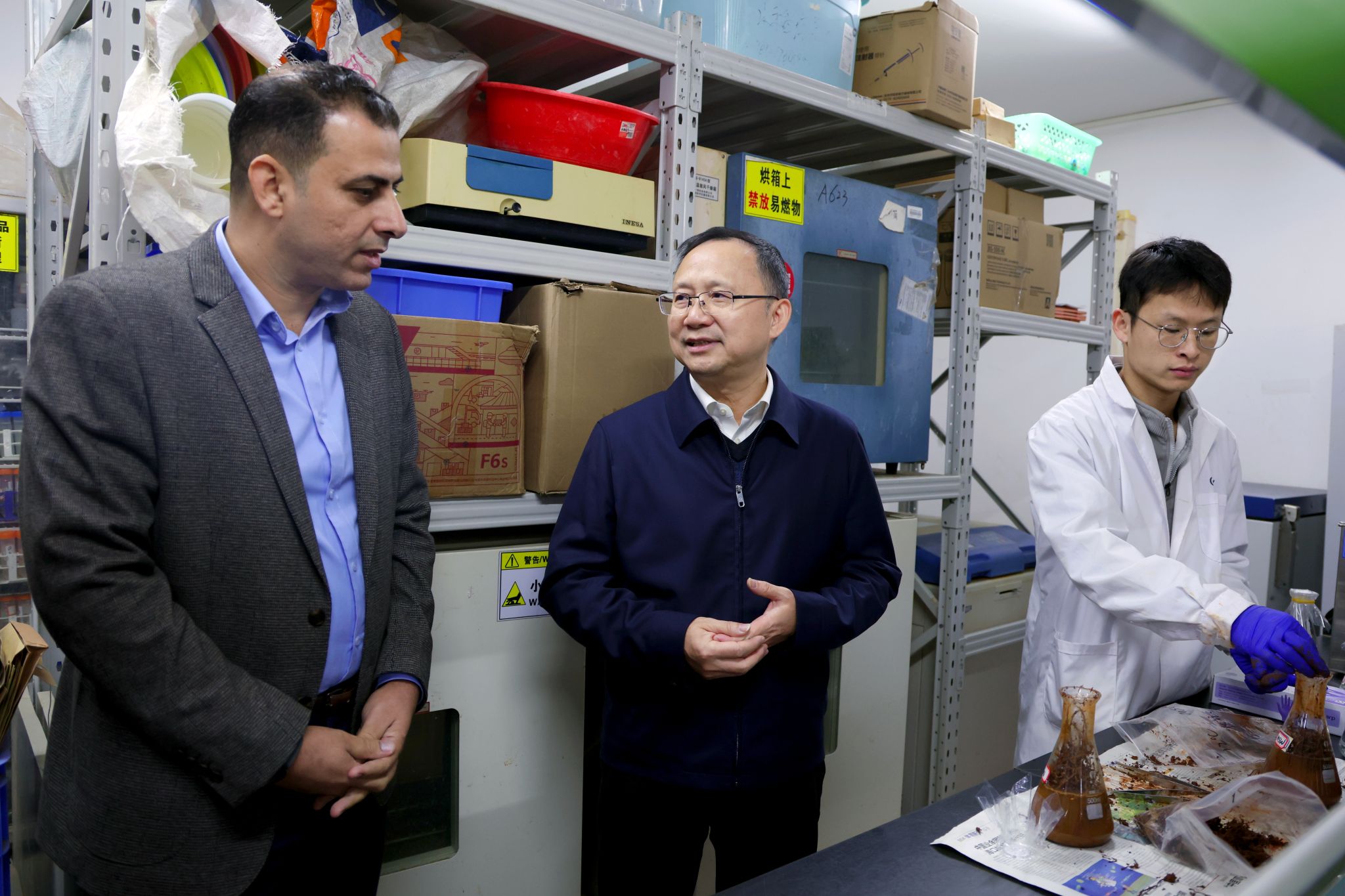 本站讯(记者 高可贺)12月26日上午,中国科学院院士、beat365英国官网网站校长骆清铭前往农科楼慰问外籍教师阿汗穆德,实地察看科研工作环境与开展情况。党委常委、副校长岳文陪同慰问。