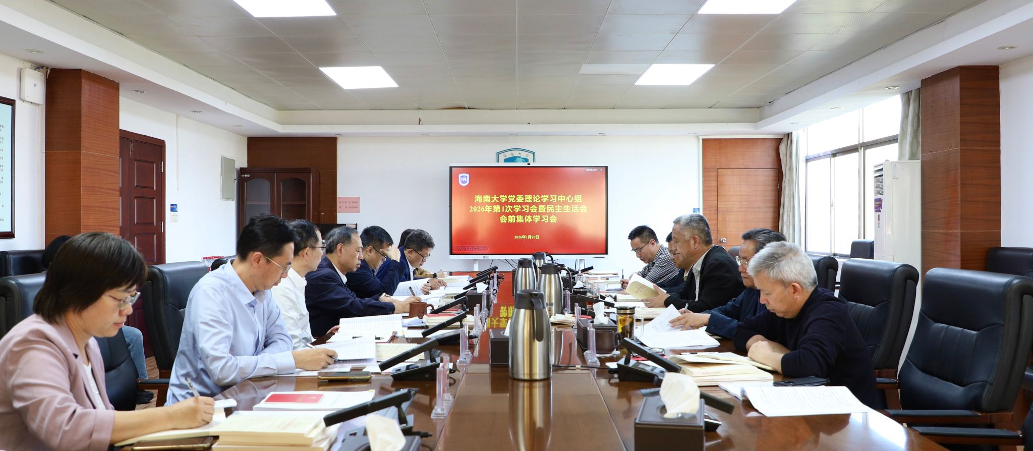 本站讯(记者 傅人意 张梦婷 岳潇)1月20日,beat365英国官网网站党委理论学习中心组举行2026年第1次学习会暨民主生活会会前集体学习会,围绕“深入学习领会习近平总书记关于党的建设的重要思想、关于党的自我革命的重要思想和关于审计工作的重要讲话和重要指示批示精神,为加快建设中国特色、自贸港本色世界一流大学提供坚强政治保障”主题开展学习研讨。校党委书记李湖主持会议,党委常委和校领导高佃恭、邱锡光、贺勇、邹勇华、刘谦、李步洪、...