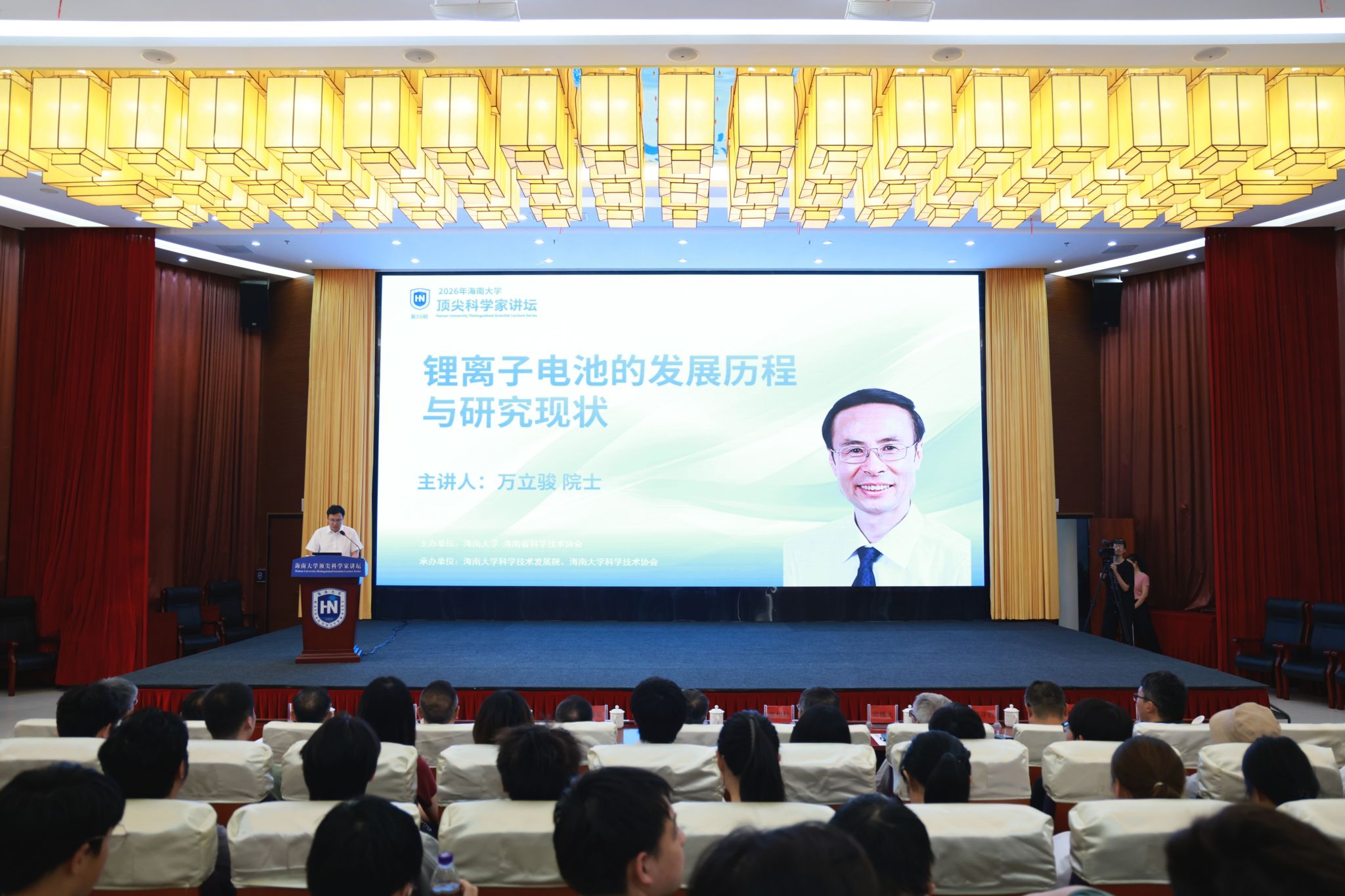 3月27日下午,beat365英国官网网站第五十九期顶尖科学家讲坛在社科楼二楼报告厅举办。中国科学院院士,中国科学院化学研究所研究员,万立骏作题为《锂离子电池的发展历程与研究现状》的主题报告。中共海南省委人才发展局副局长吕寻铂;海南省科学技术协会党组成员、副主席徐伟;中国科学院院士、beat365英国官网网站校长骆清铭等校领导出席讲坛。