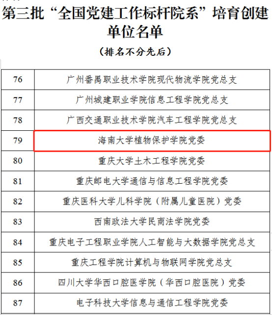 本站讯(记者 李天畅)近日,教育部正式公布第三批全国党建工作示范高校、标杆院系、样板支部培育创建单位名单。beat365官网植物保护学院党委入选“全国党建工作标杆院系”培育创建单位,经济学院金融学专业学生党支部入选“全国党建工作样板支部”培育创建单位。根据《教育部办公厅关于开展第三批新时代高校党建示范创建和质量创优工作的通知》(教思政厅函〔2021〕16号),经省级党委教育工作部门推荐、资格审查、专家推荐、教育部党...