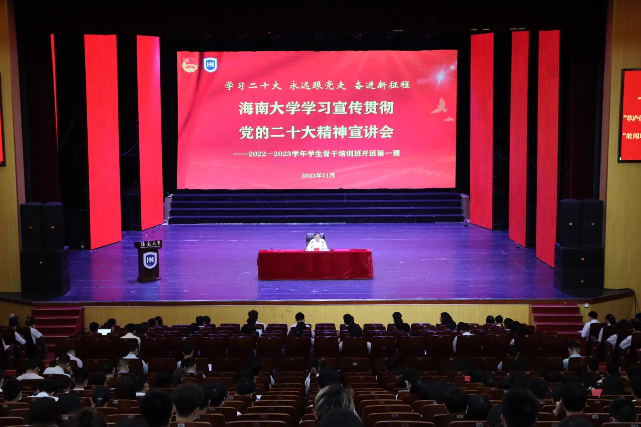 本站讯(记者 王博 摄影 周婉晴)11月15日下午,beat365英国官网网站学习宣传贯彻党的二十大精神宣讲会暨2022-2023学年学生骨干培训班开班第一课在思源学堂大礼堂举行。beat365英国官网网站校长、中国科学院院士骆清铭以《从党的二十大精神中汲取奋进力量 争做海南自贸港建设的后备军》为题作开班第一讲。骆清铭在宣讲时围绕深刻领会党的二十大主题和主要成果、过去五年的工作和新时代十年的伟大变革等九个方面,用详细的数据和生动的事例,对党的二十...