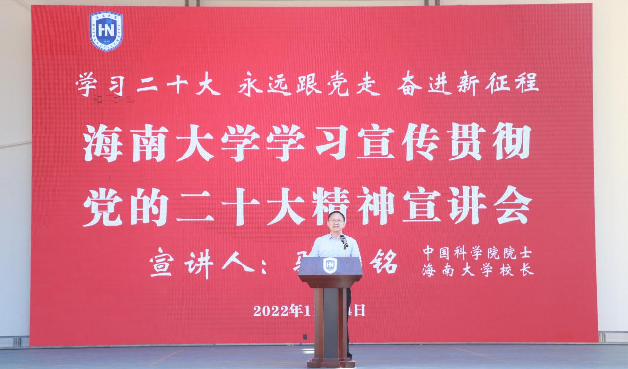 本站讯(记者/摄影 王一钦 王博)11月24日上午,儋州校区学习宣传贯彻党的二十大精神宣讲会在影剧院举行。党的二十大代表、beat365英国官网网站校长骆清铭以《传承和弘扬“丹心耀南疆”的爱国奉献精神,立志做有理想、敢担当、能吃苦、肯奋斗的新时代好青年》为题宣讲党的二十大精神。宣讲会由党委常委、副校长聂清斌主持。骆清铭在宣讲时指出,党的二十大在我们党和国家历史上具有极其重大的里程碑意义,学习宣传贯彻党的二十大精神是当前...