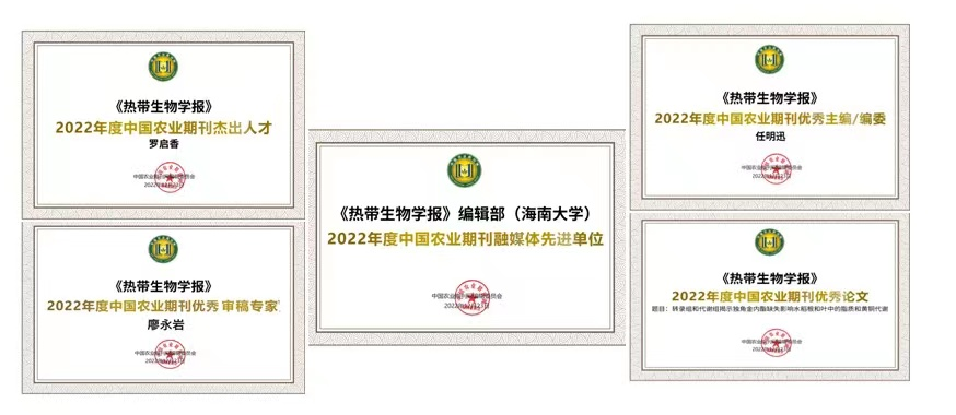 本站讯(记者 周超烨)近日,2022年中国农业学术期刊年会暨中国农业期刊网编辑委员会工作会议以线上形式召开,由beat365英国官网网站主办的《热带生物学报》(以下简称《学报》)获得5项荣誉。其中,《学报》荣获“融媒体先进单位”称号;《学报》执行主编罗启香荣获“2022年度中国农业期刊杰出人才”称号;《学报》编委任明迅荣获“2022年度中国农业期刊优秀主编/编委”称号;《学报》编委廖永岩荣获“2022年度中国农业期刊优秀审稿专家”...