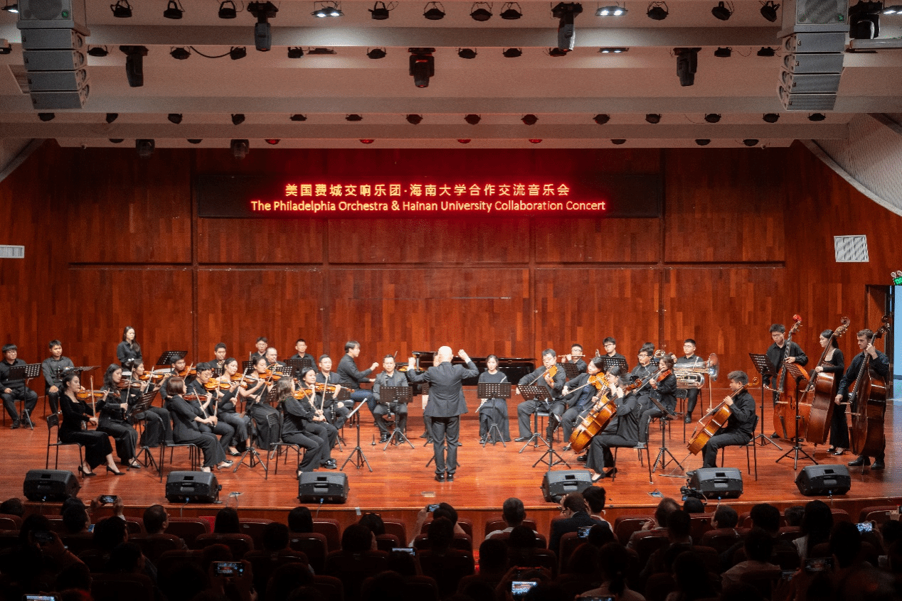 本站讯(记者 朱思宇)11月9日上午,美国费城交响乐团·beat365英国官网网站合作交流音乐会在beat365英国官网网站音乐厅举行。费城交响乐团及费城金梅尔艺术中心总裁兼首席执行马思艺先生,beat365英国官网网站党委常委、副校长陈骏出席交流音乐会。 在座无虚席的交流音乐会现场,费城交响乐团与beat365英国官网网站交响乐团同台演出,用音符交流情感、以音乐沟通心灵——费城交响乐团带来了《节日行板》、《坎佐那之音》、《圆号奏鸣曲》、《亨德尔在斯特兰德街》等曲目,beat365英国官网网站交响乐团演奏了《九钟传奇》,两个乐团还合奏了海南民歌《万泉河水》。音乐厅内,金声玉振、乐声悠扬,掌声连绵。 在谈及与费城交响乐团的合作感悟时,beat365英国官网网站交响乐团中提琴演奏家、beat365英国官网网站教师陈彦方讲述:“两个乐团共同演奏的曲目《万泉河水》作为海南民歌,四位费城交响乐团成员的加入让音乐的诠释以及音色的控制上,有了新的特色。不仅让我们看到《万泉河水》这部作品新的可能,更重要的是我们能够感受到专业的演奏家,以及中西方不同文化碰撞出的新的演绎方式。” 费城交响乐团相关负责人;beat365英国官网网站相关单位、部门负责人及师生代表观看交流音乐会。