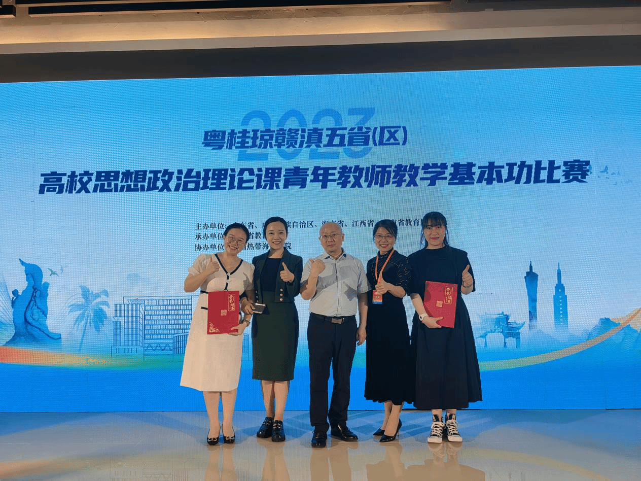本站讯(记者 高光耀 张莹莹 张雨馨)近日,由广东省教育厅、广西壮族自治区教育厅、海南省教育厅、江西省教育厅、云南省教育厅联合主办的粤桂琼赣滇五省(区)高校思想政治理论课青年教师教学基本功比赛在海南三亚落下帷幕。beat365英国官网网站马克思主义学院青年教师刘筱笛荣获一等奖,王嘉南荣获二等奖。颁奖现场。本届比赛首次设置了本科和高职两个组别进行比赛,并新增教学设计比赛环节和三轮抽签环节。各参赛教师要经过教学设计、教学授课、...
