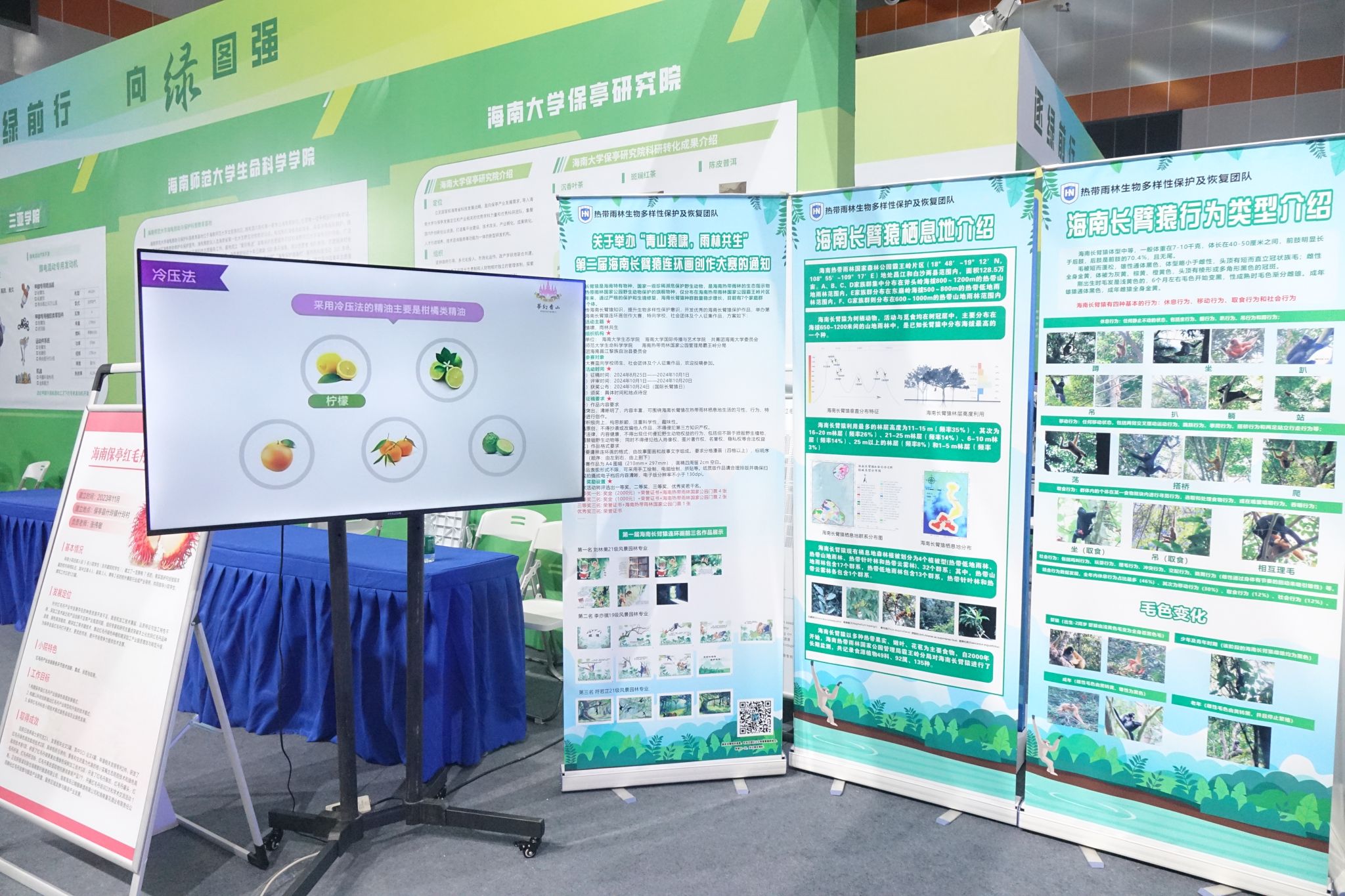 beat365英国官网网站热带雨林生物多样性保护及恢复团队以图文形式展示了全球长臂猿的种类、海南长臂猿的行为特征和栖息地现状,展出了第一届海南长臂猿连环画创作大赛前三名作品。