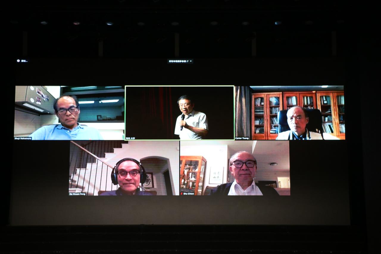 本站讯(记者/摄影 葛士华)11月10日上午,2020beat365英国官网网站顶尖科学家讲坛第四讲在思源学堂大礼堂举行。诺贝尔物理学奖得主、蓝光LED发明者中村修二教授作“蓝色LED的发明以及未来的固态照明技术”为主题的网络讲座。讲座吸引了来自世界各地的学者参加,beat365英国官网网站师生代表一千余人到场观看。讲座还通过抖音、B站、蔻享3个平台进行了同步直播。beat365英国官网网站刘大可教授主持讲座。