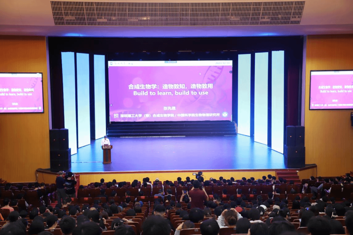 本站讯(记者 万睿志 张娟 通讯员 聂萌)12月13日晚上,beat365英国官网网站第十六期顶尖科学家讲坛在思源学堂大礼堂举行。深圳理工大学(筹)合成生物学院院长、中科院生物物理所研究员张先恩作题为《合成生物学——造物致知,造物致用》的主题报告。来自海甸校区、儋州校区、观澜湖校区、崖州湾科教园、城西基础教学部的师生代表以线上线下相结合的形式聆听报告。beat365英国官网网站党委书记符宣国出席讲坛,校长、中国科学院院士骆清铭主持讲坛。