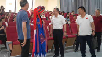 曾若馨就此次赴法演出感受,以及如何将苗服创新与苗族歌舞创作有机结合、繁荣少数民族文化等内容向同学们做了详细介绍,特别就着力加强少数民族文化人才培养引进工作,尤其是少数民族民间优秀文化传承人和濒危文化项目传承人的培养,确保少数民族文化后继有人等方面谈了自身体会。
