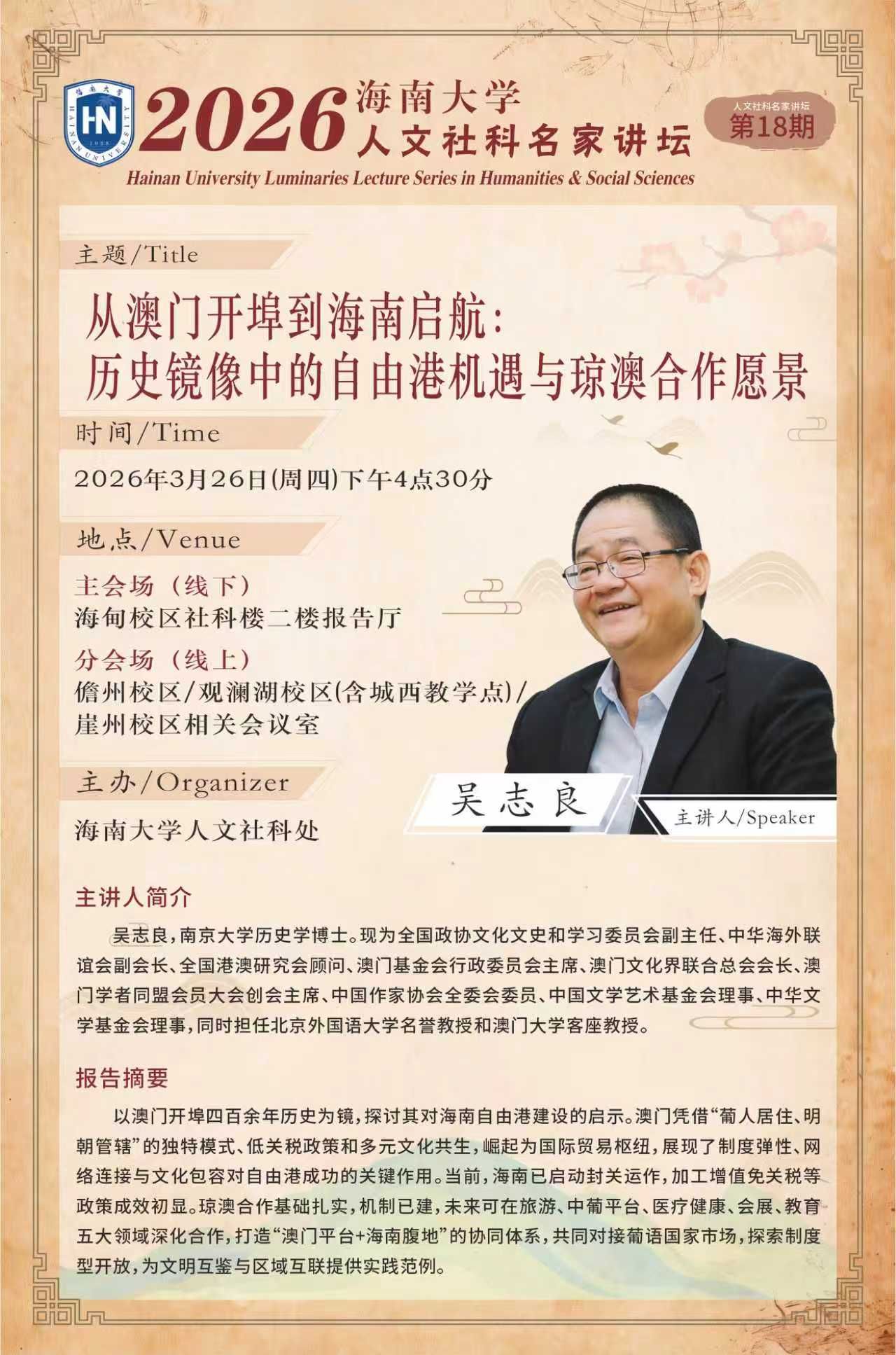 2026beat365英国官网网站人文社科名家讲坛 | 从澳门开埠到海南启航:历史镜像中的自由港机遇与琼澳合作愿景