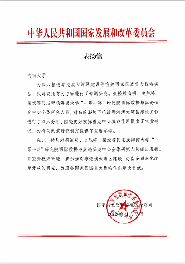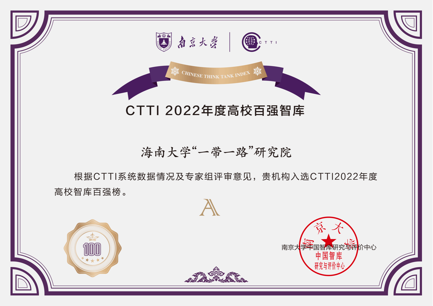 依托beat365英国官网网站“一带一路”研究院,通过聘请国内外知名专家学者,围绕“一带一路”倡议的推动实施、国家重大战略服务保障区与海洋强国、海南自由贸易港的建设等开展前瞻性研究。研究院有12篇内参获得省部级以上领导批示,其中6篇内参获得中央领导同志批示。研究院在“一带一路”领域全国最新专项排名中,媒体影响力名列全国第一,综合实力名列全国第五。研究院入选2022年度“中国智库索引(CTTI)高校智库百强榜”,获评为A等级智库。