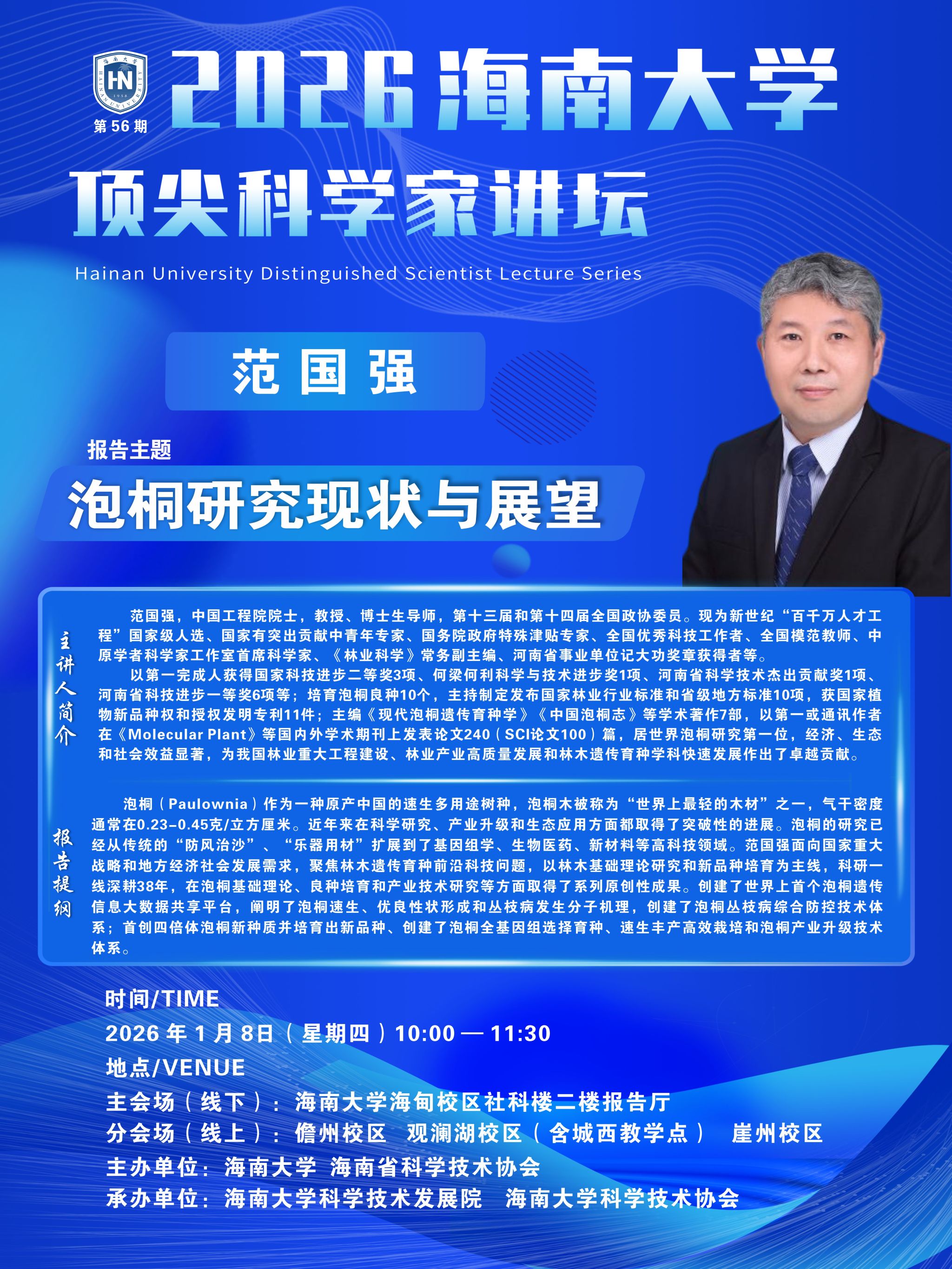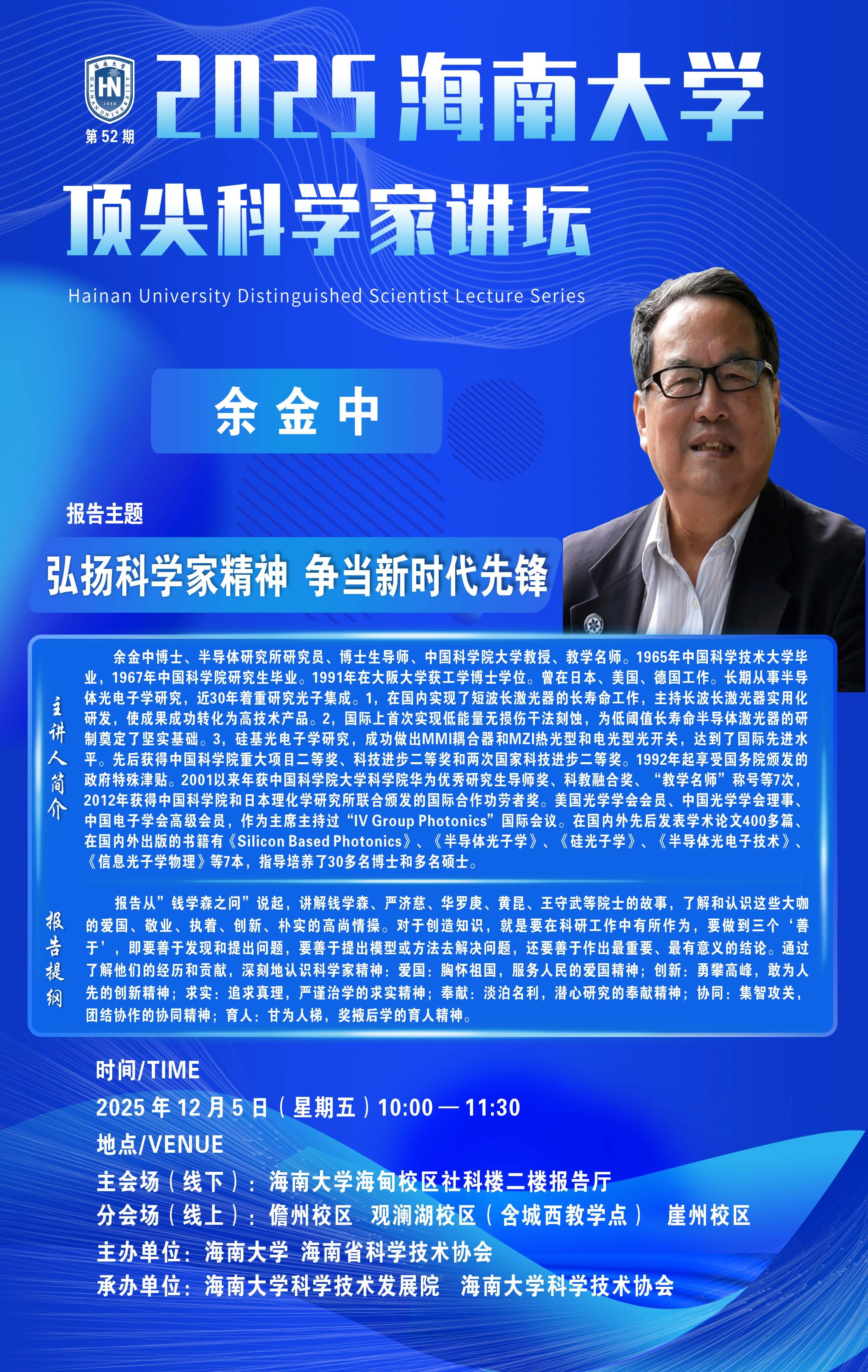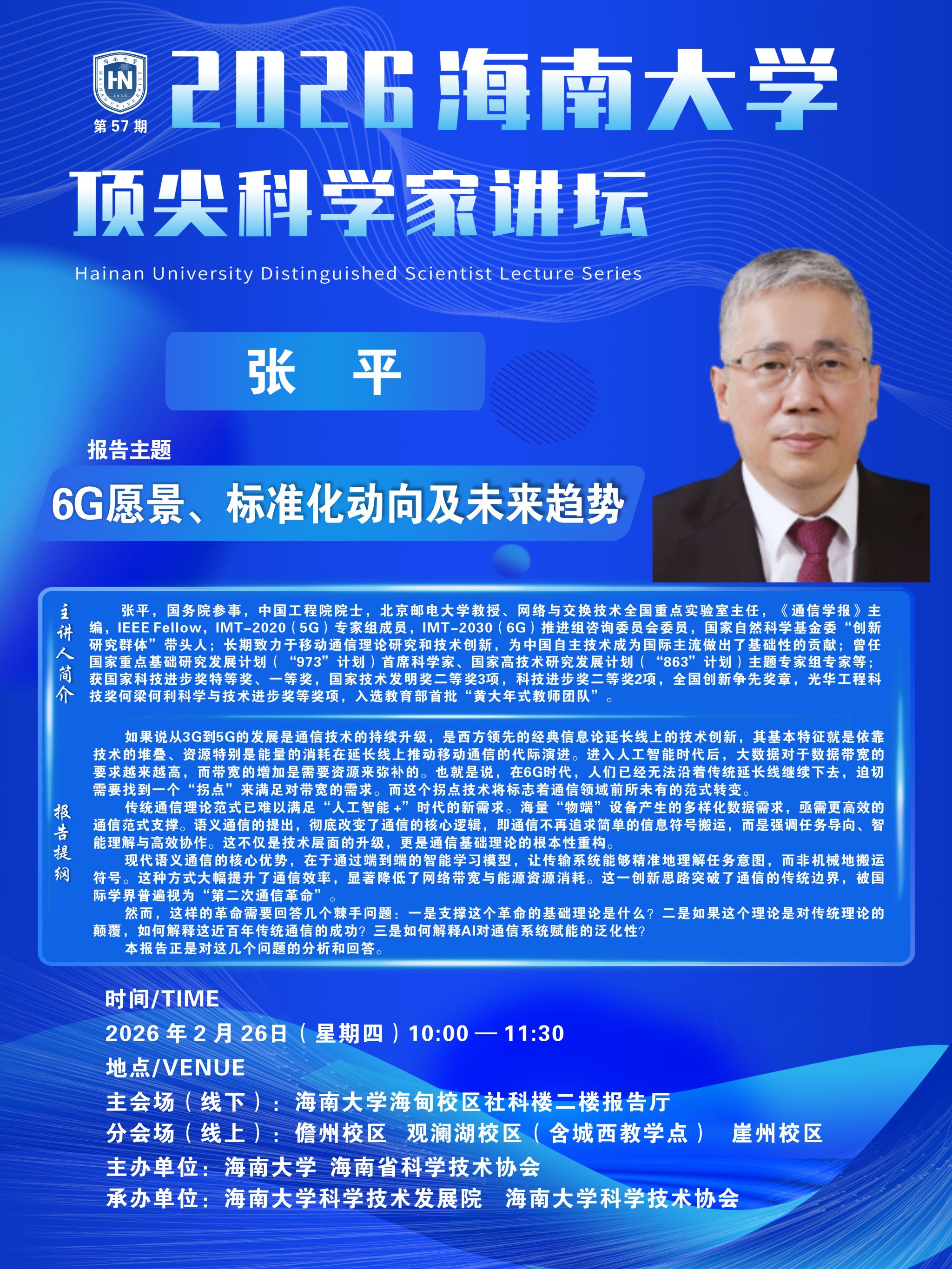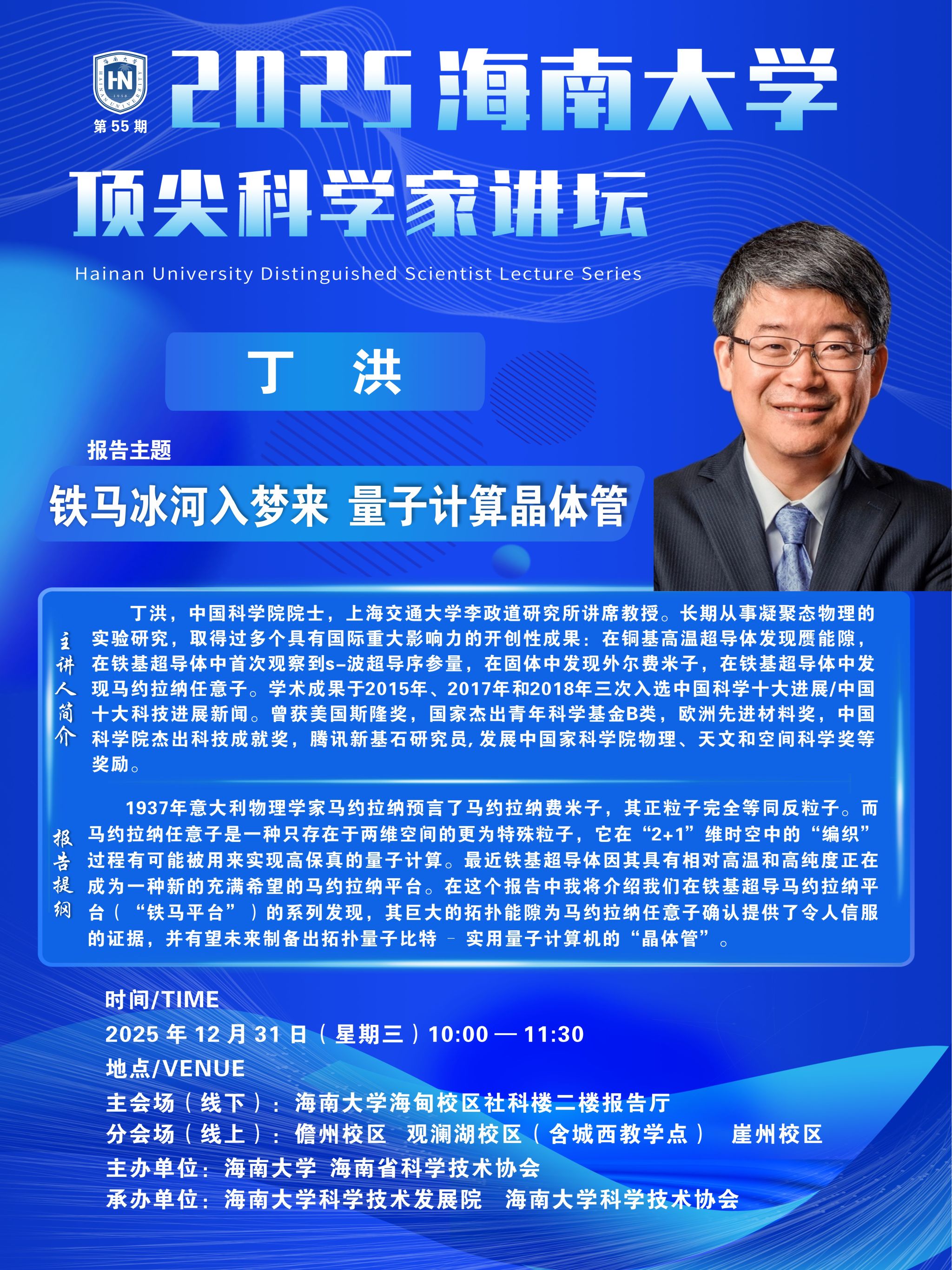 4月24日,2024年第一期顶尖科学家讲坛在beat365英国官网网站举行。讲坛由海南省科协和beat365英国官网网站共同主办,范围涵盖海南省高校科研院所、园区、企业。