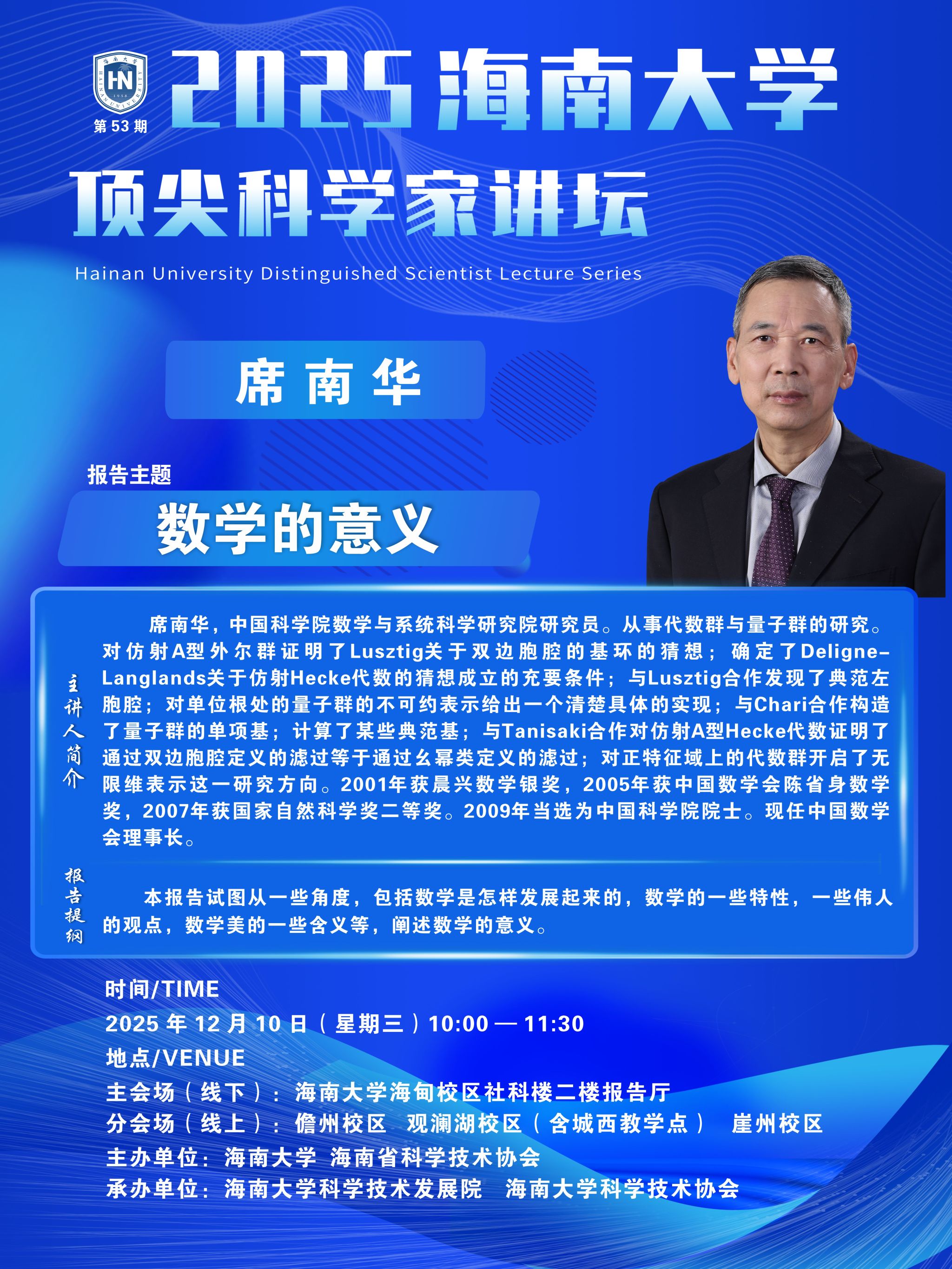 “beat365英国官网网站顶尖科学家讲坛”致力于开拓学校师生的国际学术视野,增加师生与世界学术大师近距离接触的机会,聆听各学科领域最前沿的声音,促进相关学科国际交流与建设,培养师生的家国情怀、科学兴趣和创新思维,为学校与国际学术界搭建交流的桥梁。